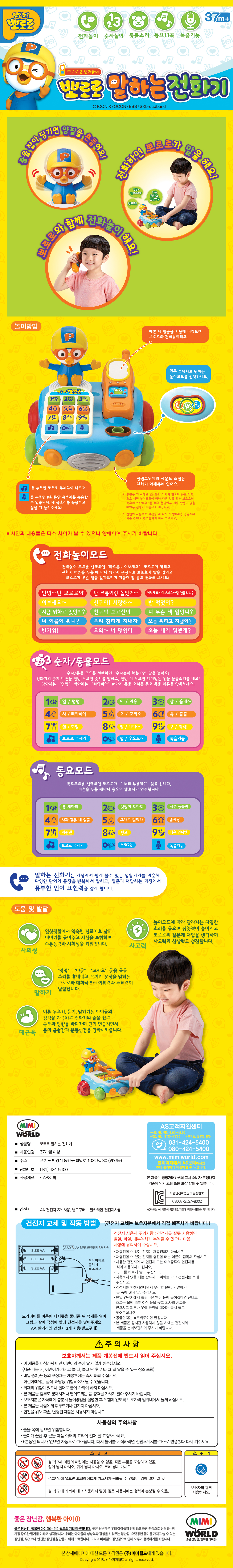 따르르릉~ 뽀로로가 전화를 해요! 버튼을 누를때 마다 뽀로로가 다양한 말을
